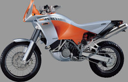 träume ich manchmal von dieser Maschine: Das absolute Top-Serien-Modell, das KTM für den Rallye-Bereich im Moment zu bieten hat: Zusätzlich zu den serienmäßigen 28-Litern Tankvolumen werden hier im Heck nochmals Zusatztanks installiert. Weiterhin gibt es ab Werk ein Roadbook, GPS sowie alles, was zu einer zünftigen Wüstentour dazugehört.... Let's go to Dakar... and win. |